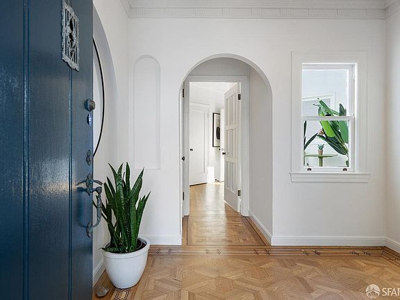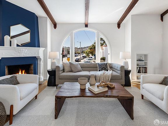 Mediterranean Revival 3-bed, 2-bath Mission Terrace home blending exceptionally well-maintained 1930s period detail and sophisticated contemporary styling, including air conditioning! Curb appeal, Graceful foyer. LR w/working fireplace, elegant arched window, period sconces, wood ceiling beams w/whimsical details. DR w/sleek custom walnut built-ins. Newly refinished floors upstairs including original parquet w/mahogany inlays. Contemporary kitchen w/generous skylight, premium appliances, abundant cabinet and counter space, bar seating. Delightful center patio flood the kitchen w/light. 2-nicely sized BRs overlook the garden. Full bath w/tub, walk-in shower and beautifully preserved vintage tile completes the main floor. Downstairs is a spacious primary BR w/French doors to the garden. Sleek modern bath w/walk-in shower. Laundry room w/ side-by-side W/D. Lush and private backyard w/mature trees and plants, stone patio and low maintenance turf lawn. 2-car garage w/ample storage space. Custom closet built-ins in all BRs. Mission Terrace, home to Balboa Park, is a beloved residential neighborhood known for its warm community. Near Ocean Avenue, Mission St, and Glen Park commercial corridors. Close to Balboa and Glen Park BARTs, Muni lines, and easy freeway access.