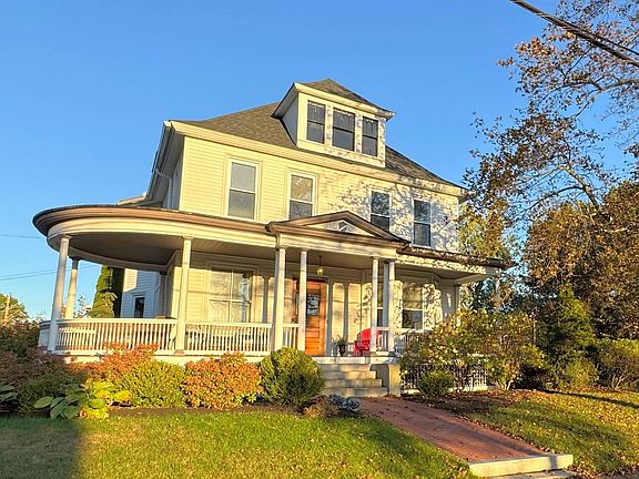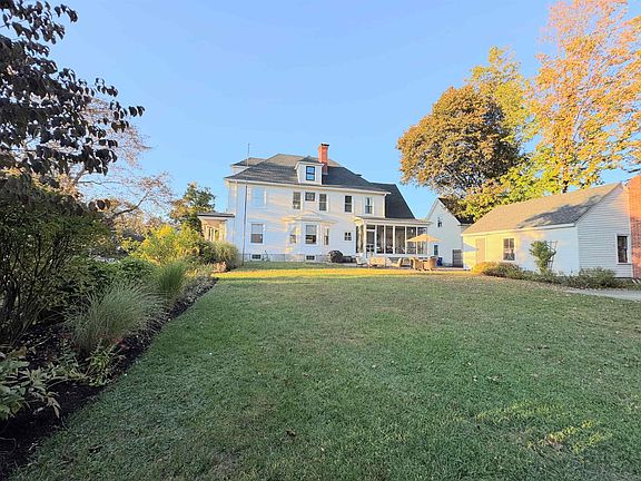 Set in the historic North End of Manchester, this stately house faces west enjoying sunsets behind a beautiful church steeple. This rare oversized lot features flower gardens and a small decorative pond. A private screened in porch, large stone patio, and basketball court add to this wonderful exterior entertaining area. A large front porch invites guests into the foyer of the home where one is met with gorgeous craftmanship. The home boasts detailed inlay wood floors, extensive wood molding, pocket doors, stainedglass windows, and built ins. Modern system updates allow one to truly enjoy this historic beauty. An abundance of large windows throughout the home allow for ample sunlight. Enjoy open concept living in an antique home with it's double living room with gas fireplace and sight lines into the dinning room and foyer. Two sets of beautiful pocket doors allow for a cozier more private feel in each area when desired. An oversized pantry with additional sink off the kitchen is wondeful for entertaining and storage. Spacious bright master bedroom with large walk in closet. Walk up attic allows for possible future expansion with air conditiong already in place and a updated bedroom with mountain views. Expansive storage in basement along with a finished family room with gas stove. Large laundry room.