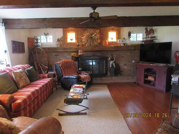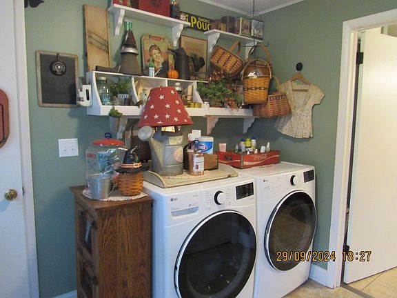 First floor has living room, family room with fireplace, applianced kitchen with eating space, dining room that could be a bedroom, full bath and laundry room.