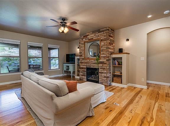 Very desirable North area home in The Grand Vista subdivision. This ranch style home boasts 3 bedrooms, plus an office, 2 1/2baths, and 3 car garage. Enjoy the open concept layout, roomy dining and living room area, hardwood floors, solid surface counter-tops, large kitchen that looks out onto the backyard with a walk in pantry, split bedroom floor plan, gas fireplace, huge master suite with walk-in shower and closet, and a private back patio for entertaining. Everything you need you will find in this well cared for beautiful home. The laundry room adjoins the 3 car garage for ease of use. You'll love what you see so call today for your private showing.
