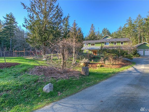 Coveted location by the Orcas Ferry Landing! Charming four bedroom, two bath home on five acres near Victorian Valley. Recently remodeled with addition in 2018, including open-floorplan kitchen with propane fireplace and cozy hang-out spaces. Bright and sunny location with over 3 deer-fenced acres, gardens, fruit trees, chicken coop, sports court, hot tub, & seasonal creek. Detached two-car garage w/storage. New roof, exterior recently painted, new washer & dryer, private well, 6 bedroom septic.