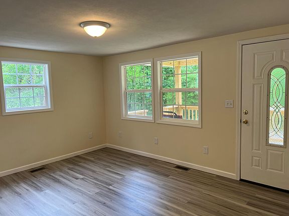 Newly built Cozy 3 BD, 1 BA Home on Flat Mountain near Alderson WV. Peaceful & Private setting on a wooded lot with lots of wildlife. Newly constructed wraparound deck connects the new covered front and rear porches. The home has new grey vinyl laminate flooring. New floors, windows, floor joints, walls and ceilings. New bathroom with bath fixture, new kitchen, cabinets, countertops, stainless appliances. Also new stackable washer and dryer conveys. New HVAC electric forced air furnace and pex plumbing. Large detached garage with electricity! Agent Owned!