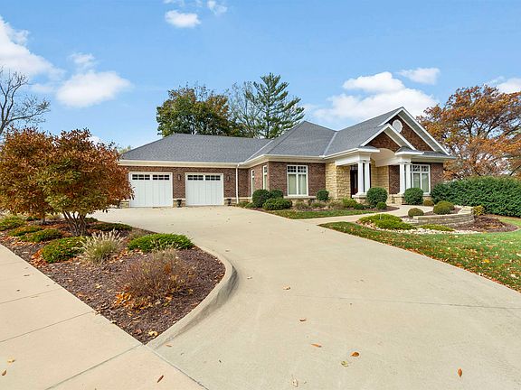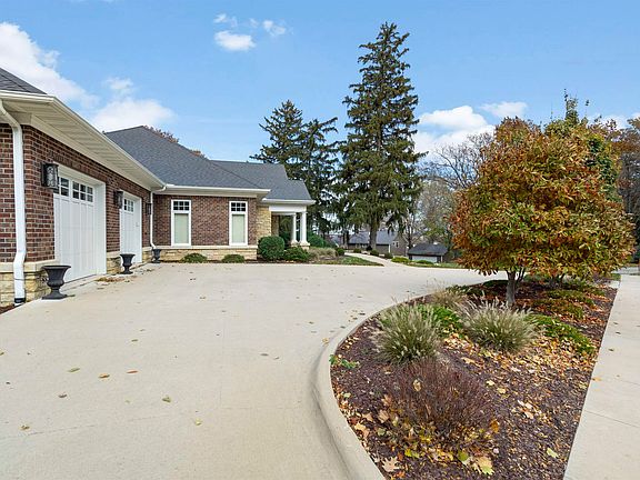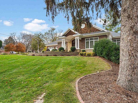 This luxurious, high-end home boasts timeless architectural design. That along with modern sophistication and location is a must see. As you approach the house, a meticulously landscaped front yard welcomes you, setting the tone for what lies within. The exterior features are a blend of stone and brick with tasteful accents and a grand entry framed by lush greenery. Upon entering, you are greeted by a spacious foyer adorned with a dazzling chandelier. this leads you to the heart of the home. The open concept living area is bathed in natural light, thanks to expansive windows that offer breathtaking views. The gourmet kitchen is a culinary enthusiast dream., with top-of-line appliances, granite and an oversized island. Perfect for casual dining or entertaining. Adjacent to the kitchen a cozy breakfast nook overlooks the tranquil yard. The main bedroom suite is a quiet retreat featuring a spa-like bath with soaking tub and walk in shower. A formal dining room with amazing woodwork and crown molding exudes quality and charm, The high ceilings in the great room frame the beautiful gas fireplace, hardwood flooring and access to the impressive deck. The office/library is perfect for efficient work. There is a elevator space complete with electrical components and custom space for installation. The lower level is accessed buy a beautiful open staircase. This is a area complete for full living quarters. Complete with recreation room, kitchenette, bath, two bedrooms, Lower level ceilings are 10' high. 2 car garage, and abundant storage. In total the property has four heated garages, 3 full baths and a list of extensive upgrades.