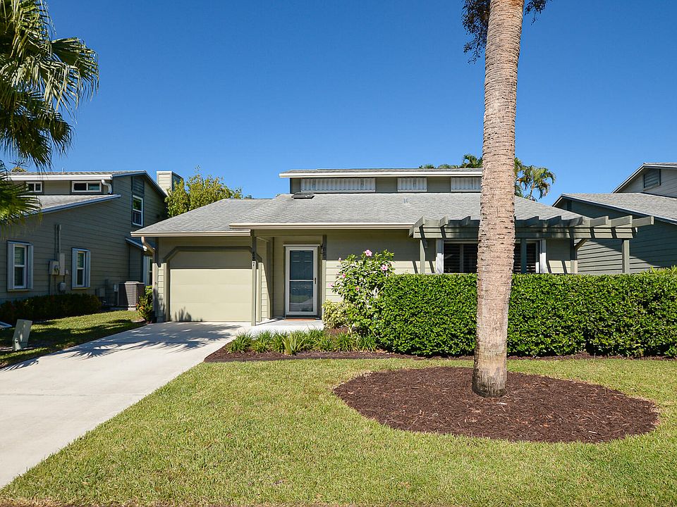 Fabulous home in desirable Holly Creek close to beaches, shopping, restaurants & so much more! Features RE-DONE beauty with front porch entrance, Hurricane Windows, 3 BR's, 3 BA's, loft & 1 Car Garage. Updated Kitchen includes granite counter tops, stainless steel appliances & opening to dining area. Spacious living room boasts stunning wood burning fireplace, vaulted ceilings & charm. Master suite downstairs includes lovely laminate flooring, atrium off the sliding glass doors, Plantation Shutters, walk-in closet with built-in's & updated Master bath with marble counters, dual sinks & shower. Bedroom 2 also downstairs & Bath 2. Upstairs you will find private loft area perfect for your office space or private sitting area, BR 3 & Bath. Screen enclosed Lanai overlooking tranquil lake view. HOA includes: Pool, Tennis, Pickleball, library, recreation facility, lawn maintenance, cable & internet.