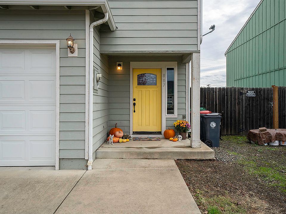 Welcome to this centrally located 3-bedroom, 2.5-bath townhome in the heart of Central Point — an ideal investment property or first-time home! Offering 1,429 sq ft of living space, this home features beautiful hand-scraped wood plank laminate flooring on the main level, vaulted ceilings, and an abundance of natural light throughout. Spacious primary suite includes a generous walk-in closet and dual vanity sinks in the ensuite bathroom. Enjoy a fully fenced backyard, perfect for pets, gardening, or outdoor hobbies; and close by you'll find a neighborhood park. With a one-car garage for extra storage or parking and easy access to downtown Medford, Jacksonville, and the rest of Central Point, this home truly combines comfort with convenience. Exterior paint is being completed now to make this home truly move-in ready!