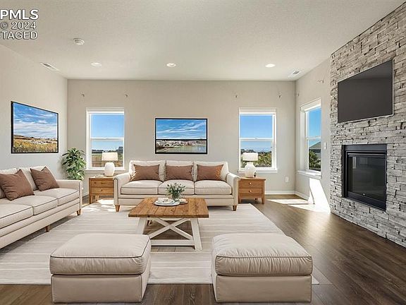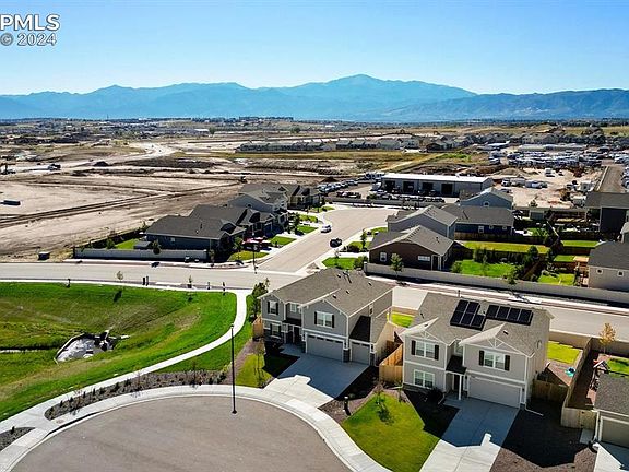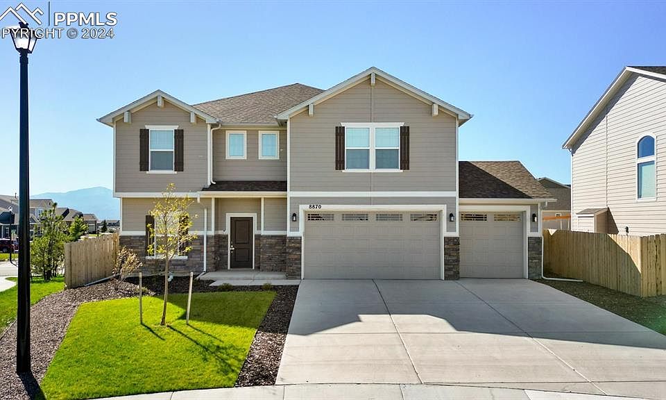 You'll love this like-new beautiful home with 4-car tandem garage that is conveniently located off Vollmer and Black Forest in District 20, just minutes from the Powers Corridor. This home is perfect for entertaining family and guests, with its spacious open concept throughout the main level. The kitchen is the heart of the home, complete with granite countertops, subway tile backsplash, and stainless steel appliances. The generously sized backyard has a covered back patio to enjoy after a long day's work. Upstairs, the oversized master bedroom with 5-piece bath, includes a magnificent tub and walk-in closet. Also on the second level is a loft area and three additional bedrooms. The home is equipped with central air, to cool down the home on those hot summer days. The Pikes Peak mountain views from the back patio are spectacular. Come check out this home, it won't last long!