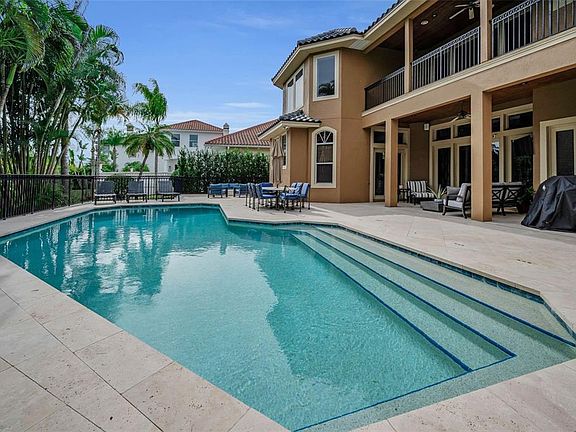 Modern Tuscan revival architecture and thoughtful innovation converge in this exceptional Mediterranean style Luxury custom-built Two story residence in Bayou Club Estates, where openness, comfort, and quiet sophistication define every space. Meticulously designed and exquisitely finished, the home reveals superior craftsmanship from the moment you step inside. At its heart is a sun-filled, two-story living area framed by a dramatic wall of windows, Tuscan style columns all overlooking the paver terrace and resort-style pool, custom built in 2022. The expansive outdoor environment is designed for effortless enjoyment: a sweeping paver deck ideal for entertaining, a shimmering, new-generation pool that invites relaxation, a putting green and a full-size built-in gas fire pit that sets the tone for memorable evenings under the stars. Just off the entry, an inviting dining room, enhanced by a custom built-in buffet, flows seamlessly into the living area. Adjoining the kitchen is a casual dining space ideal for everyday meals form a true culinary hub, featuring chef-grade appliances, custom cabinetry, a large center island, and quartz countertops. Adjacent to the kitchen is a spacious utility room offering abundant cabinetry, a full-size washer and dryer, and generous storage. This highly functional workspace transitions naturally into an inviting family room anchored by a gas fireplace with custom built-ins & huge mantle with a striking architectural window flooding the room with light, creating the perfect setting for both intimate meals and lively gatherings. The light-filled family room offers a year-round retreat with serene views of the gardens and pool. A split bedroom layout ensures privacy for all. The main level includes a spacious home office, a secondary ensuite bedroom, and a generous flex room—currently used as an exercise studio—with an adjacent full pool bath. Upstairs, the primary suite serves as a calming sanctuary, offering generous proportions, a spa-inspired ambiance, an expansive double walk-in closet and a private second story terrace overlooking the private backyard. A landing between the upper-level bedrooms provides a striking overlook to the lower level and opens to a private terrace with views of the front green space. Two additional bedrooms, connected by a Jack-and-Jill bath, and a dedicated study with integrated shelving complete the upper floor. Set on a large waterfront lot, the backyard is an oasis for everyday living and weekend recreation. A private dock allows for small-craft access to a peaceful waterway that meanders toward the Bay and the Gulf. The fully usable green space offers ample room to play, ideal for both pets and children. Practical luxuries and value added improvements include a new concrete, barrel tile roof, an oversized, split four-car garage, newer kitchen & baths and exceptional storage throughout. Perfectly positioned in the heart of the Largo/Seminole area, the Bayou Club community is comprised of 400 homes on just over 400 acres boasting that “Old Florida” feel and a Tom Fazio designed Golf Course offering an optional membership. This premier Country Club features 24 hour gated security and full-time security guard. Elegant, functional, and beautifully private, this home embodies the quintessential Bayou Club lifestyle!