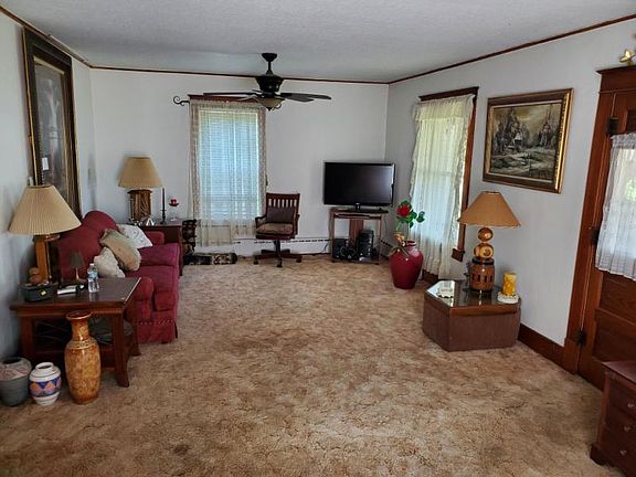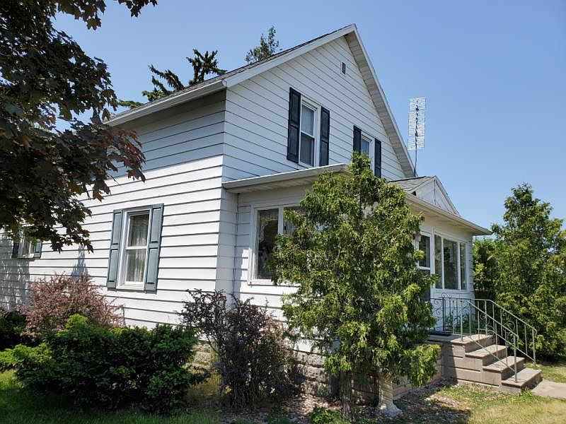 Price Reduction!! THIS PROPERTY COULD BE COMMERCIAL OR RESIDENTIAL!! This home has replacement vinyl windows, 2 full baths, 1 bedroom down and 3 on second floor. Original wood work. There is an electric heated porch area. The back breezeway has a natural gas wall heater. Great extra storage. The basement has a utility room, and great storage. There is an area out back with grape vines to make your own wine.! Detached garage and a fenced in area for the dog. Great possibilities.