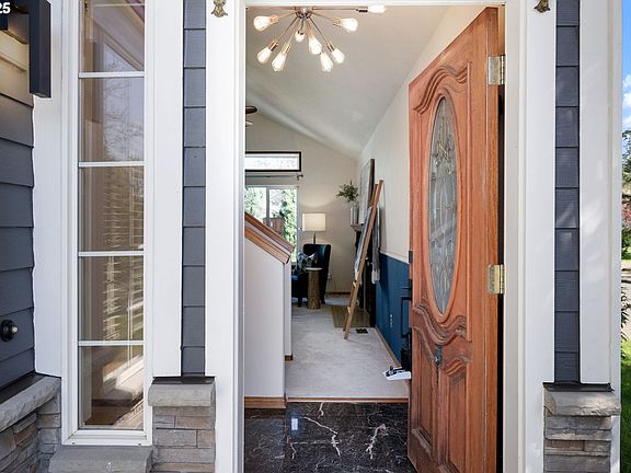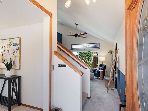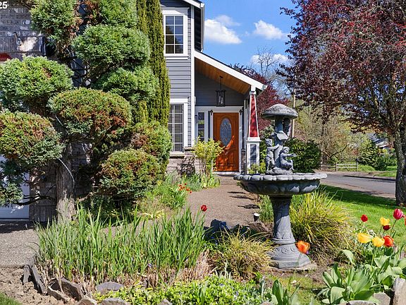 Located on a sunny corner lot in a peaceful SW Portland cul-de-sac, this light-filled home offers a smart and spacious floor plan with thoughtful updates throughout. Step into the welcoming living room, where vaulted ceilings, large windows, and a cozy gas fireplace create an airy, inviting space. The living room flows seamlessly into the dining area and updated kitchen, featuring gorgeous wood cabinetry, newer stainless steel appliances, and ample counter space. Downstairs, a versatile flex space is ideal for a home office or playroom. Upstairs, a generous loft overlooks the main living area, enhancing the open, connected feel of the home. The expansive primary suite includes a large walk-in closet, a second closet, and a spa-like en suite bathroom. The additional bedrooms offer generous space and beautiful territorial views. Major system upgrades include a newer roof and skylights (2019), Hardiplank siding and exterior paint (2019), high-efficiency gas furnace, A/C, water heater, and smart thermostat (2017), plus a newly replaced crawl space vapor barrier (2024). All the heavy lifting has been done for you! Step outside to a beautifully landscaped and private backyard featuring mature gardens with multiple rose and blueberry bushes, a striking monkey puzzle tree, plum and dogwood trees, a working water fountain, fire pit, and a large canopy-covered patio—perfect for year-round entertaining. Ideally located in Washington County with lower taxes, convenient access to shopping, parks, major freeways, and just minutes to Multnomah Village, Washington Square, and Downtown Portland.