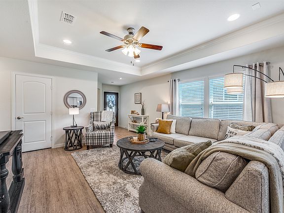Immaculate Taft Street Floor Plan in the Highly Sought-After Frisco Lakes 55+ Community! This beautifully maintained home offers charming curb appeal with a front porch and thoughtful upgrades throughout. Inside, you’ll find wood look tile flooring in the main living areas, elegant tray ceilings in both the living room and primary suite, a dedicated study, and a bright sunroom or second living space perfect for relaxing or entertaining guests. The open-concept kitchen is a chef’s dream, featuring stainless steel appliances, 36-inch upper cabinetry, soft-close drawers, a stylish tile backsplash, and a spacious island ideal for meal prep and gathering. Designed to impress with its light, bright, and open floor plan, this home feels as welcoming as it is functional. The private primary suite includes a large walk-in shower with a bench, dual vanities with quartz, and a generously sized walk-in closet. A separate laundry room with built-in shelving adds convenience and storage. Frisco Lakes residents enjoy an unbeatable lifestyle with access to a championship 18-hole golf course, three resort-style clubhouses, multiple fitness centers, indoor and outdoor pools, pickleball, tennis, bocce ball, scenic walking trails, and a full calendar of social clubs and events. Don’t miss your chance to live in one of the most desirable active adult communities in DFW!