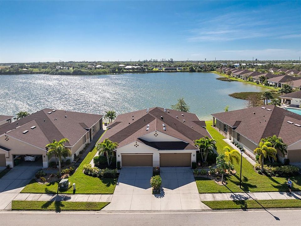 Your dream villa awaits in the conveniently located gated community of Tuscany Isles! Built in 2017 with NEW ROOF in 2022, this beautifully updated three bedroom lakefront residence offers a lifestyle of comfort and low-maintenance living, that is perfectly complemented by dramatic panoramic water views! Step through the screened front entryway into the inviting open plan filled with abundant natural light and a pleasing color palette. The great room welcomes you with luxury vinyl plank flooring and breathtaking views of the lake showcased by sliding glass doors. The screened lanai is the perfect place to enjoy your morning coffee, watch the Florida wildlife, or unwind at the end of the day with a good book and a tropical breeze. Plantation shutters on the doors allow for privacy while letting in Florida sunshine. The heart of the home is the modern kitchen, seamlessly open to the main living area for ease of entertaining. Crisp white cabinetry with quartz tops, a spacious breakfast bar, and a brand-new suite of Samsung stainless-steel appliances (installed in 2024) make cooking a breeze. Under and over cabinet lighting creates a bright, inviting atmosphere. The primary suite is a peaceful retreat, with tranquil lake views to greet you each morning. It boasts an ensuite bath with dual sinks, a walk-in shower, and a large walk-in closet. Two additional bedrooms provide flexibility for guests, hobbies, or a home office. This villa offers thoughtful updates including a water heater (2024), whole home accordion hurricane protection including the lanai, motorized shutter for front entry, comfort height toilets, whole home filtration system, and a surge protector for the electrical panel. The attached two-car garage features electric storage lift trays to meet your storage needs, and an exterior generator plug has been added for peace of mind. Enjoy the sparkling community pool and clubhouse just steps away, and tree-lined waterfront walking path, all just a short stroll from home. This location provides a perfect balance of convenience and privacy, with easy access to Punta Gorda’s charming downtown, top-notch dining and shopping.
