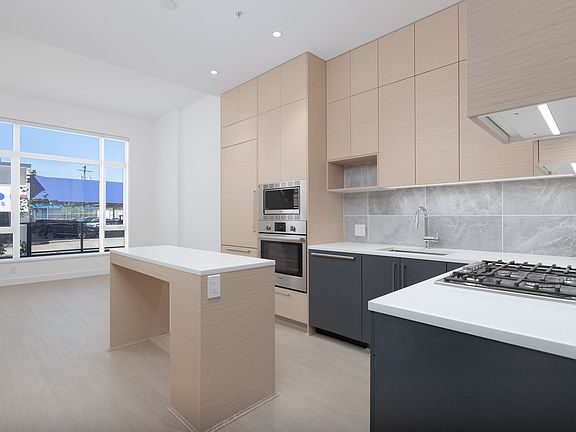 Welcome home to 8888 Osler, situated in the heart of the Marpole neighbourhood. This home offers an open-concept floor plan featuring laminate wood flooring throughout, over-height ceilings, and floor-to-ceiling windows that bring in ample natural light. The contemporary kitchen is thoughtfully designed with a Carrara marble style porcelain tile backsplash, durable quartz countertops, two-toned cabinetry, and premium Bosch integrated appliances, including a gas cooktop, and a spacious island perfect for cooking or gatherings. Residents of Osler have access to an outdoor amenity area with lounge and dining areas, BBQs, community gardens, and landscaped lawns for relaxation.
