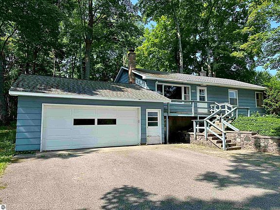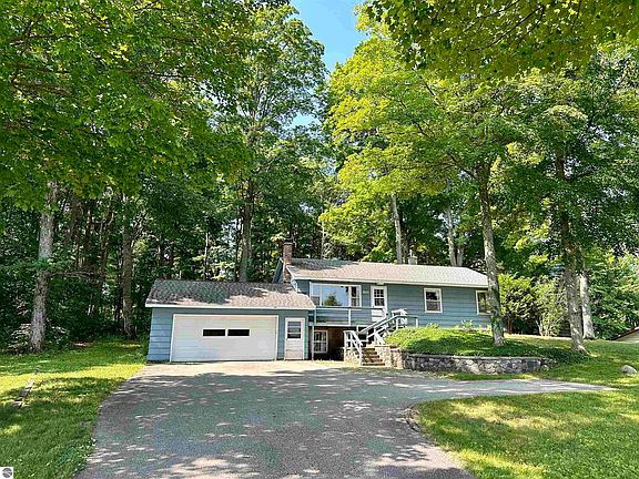 Talk about location! This home is 12 minutes from downtown Traverse City with a secluded backyard surrounded by nature and mature trees. Also extremely close to so many public beaches, lakes, trails, parks, restaurants and not 1 but 2 public boat launches. This bi-level features 3 bedrooms and 1 1/2 bathrooms with original hardwood flooring throughout most of the main floor. The lower level offers a 4th non-conforming bedroom with a fireplace next to all the storage you could ever need. There is a set up area for a workshop both inside the home and conjoining with the end of the oversized 2 car attached garage. This home is ready for its new owner willing to help with a few started projects. In the heart of Long Lake township where short term rentals are allowed.
