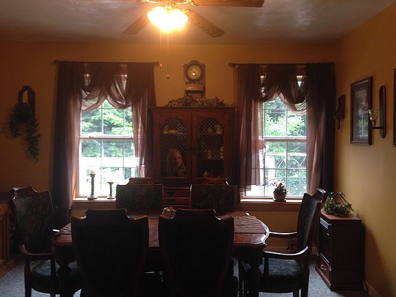 Can't see house from road. Beautiful country setting on 7.74 acres. Back patio with hottub. Covered detached deck . Outbuilding. Septic recently cleaned out. Pellet stove included. Brand new carpet on second floor.