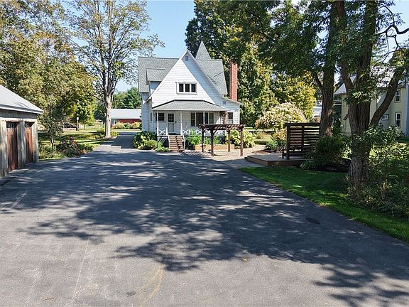 Captivated by the lure of a country village? This place is a mere 20 minutes to city hubs of Utica and Rome, 45 minutes to the heart of the Adirondack Mountains, and minutes to local fishing in the West Canada and Hinckley Lake. The home sets majestically on a large 1.1 acre lot with 2,514 square feet of interior living space in addition to a 7 stall detached garage with a second story living quarters. Long Paved drive with plenty of parking options, thoughtfully landscaped gardens and lawns, and el fresco dining area behind the home with pergola and deck surface allowing for any number of outdoor seating arrangements. Top it all off with an additional barn building and you have a property filled with promise! Walking up to the 'country settin' front porch', one can imagine a Saturday afternoon with a great book and perhaps a short nap. Stepping inside you are immediately transported to a regal and grand lifestyles of the 19th century when the affluent spent summers in upstate New York to while away the long hot days, relaxing, fishing, and entertaining guests. While lifestyles have certainly changed since the 18th century, this historic gem has retained all of its charm and period character. Upon entering the home, one will be pleasantly surprised by the openness of the main rooms, expensive hardwood flooring and of course, the architectural significant stained-glass windows which are a real show stopper! In the front of the home is a formal living room. Continuing with the open floorplan is a large formal dining room that will absolutely fit your prized dining suite! Off the dining room is a flex room with half bath that offers options of; an office, first floor bedroom, or study. Past the dining room is a large family room with wood stove. The second story will not disappoint! The sleeping quarters for the home is all on this level. With 4 spacious bedrooms, full bath and a Sun lighten Sauna room. THE GARAGE....A garage that is finished and can accommodate almost any hobbyist, craftsman, workshop, artist, or vehicle restorer. The second level offers enough space for living quarters or flex space. Stop dreaming and start living it!
