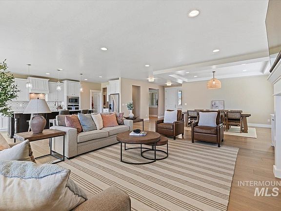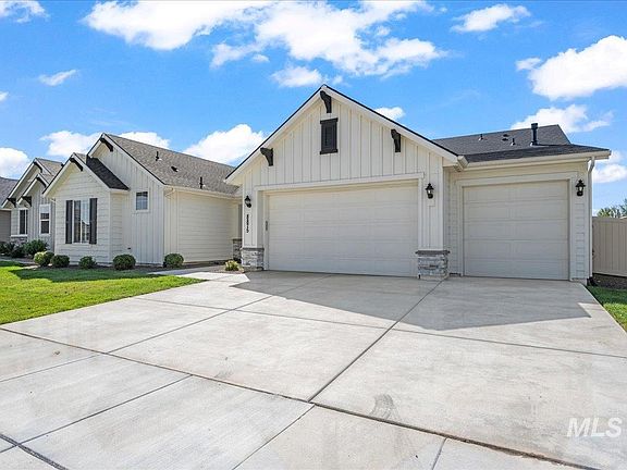 This is a beautiful, single-level home situated in the desirable Heirloom Ridge subdivision of Star. The open concept design features lots of natural light throughout. The kitchen includes a central island with a breakfast bar, lots of cabinet space, under-cabinet lighting, and a walk-in pantry. The split bedroom floor plan provides privacy and space for multiple household members. Spacious master suite with a large walk-in closet, 2 generous bedrooms, plus a versatile den perfect for a home office. The primary suite features a luxurious step-in tiled shower, dual vanities, a walk-in closet, and a second sliding glass door access to the back patio. Upgraded laundry room with full cabinetry. Covered patio extended to the full length of the house. All appliances included. Enjoy our incredible Idaho fall evenings under the extended covered patio with no immediate rear neighbors. The community features a pool and a park. Call us for more information!