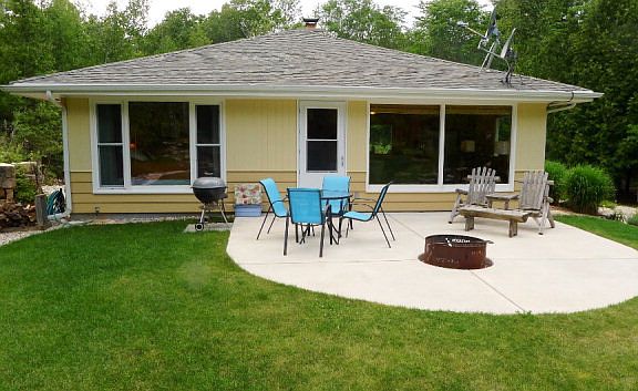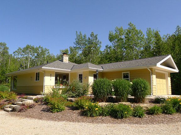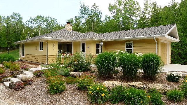 Mid-century modern that's like-new! This absolutely charming cottage sits on nearly 15 wooded acres through which the creek of Fish Creek runs, yet only moments from the heart of downtown activities, restaurants and marinas. The home was moved to its current location in 2013 and totally refurbished at that time: new foundation, new HVAC, well & septic, flooring, roof, insulation and more. The spectacular landscape includes a lush lawn area and perennial gardens transitioning into a forest of cedar and maple, wetlands and upland to explore via existing walking trails. Outdoor enjoyment continues from the patio with fire ring that looks upon a spectacular water feature. Currently utilized as a successful vacation rental property.