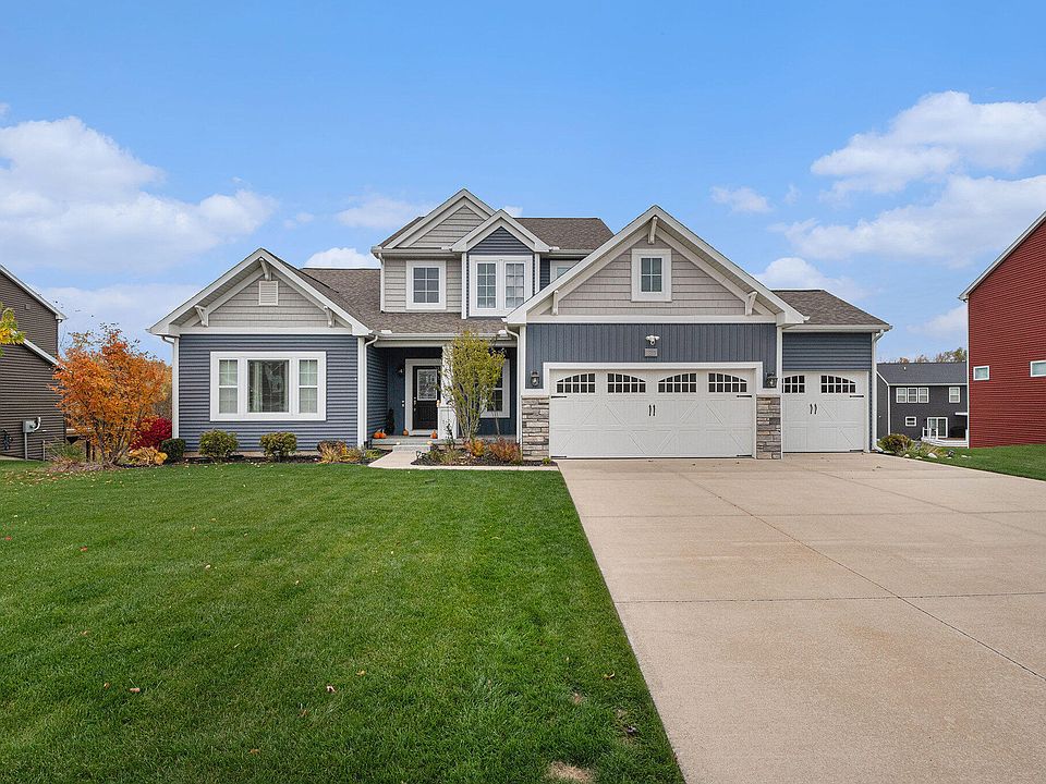 Stunning 5-bedroom, 3.5-bath walkout home in the desirable Stonegate neighborhood. With over 4,200 sq. ft. of beautifully-finished living space, this ''better than new'' Byron Center home is a dream come true. Open floor plan with dramatic two-story great room adjoining kitchen and dining area. Kitchen boasts gorgeous cabinets, granite counters, tile backsplash, stainless appliances including gas cooktop, large center island/snack bar, walk-in pantry. Spacious main floor pbedroom with ensuite bath with tile shower, soaking tub, dual sink vanity, and walk-in closet with custom built-ins. Den with wainscoting, mudroom, laundry with sink complete the main floor. Up are 3 good-sized bedrooms and full bath. The walkout level includes a family room with well-equipped kitchenette, bedroom, bath,, and large exercising room, plus large storage room or work area.