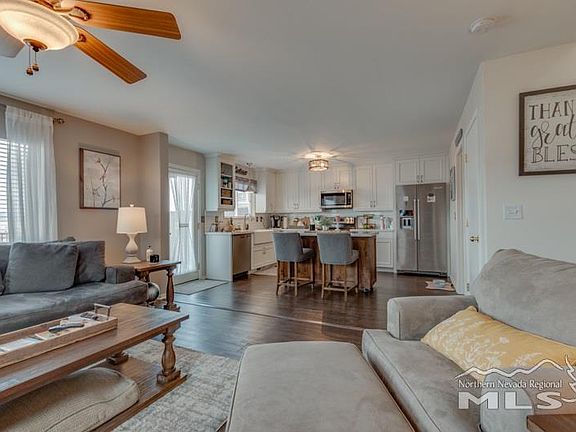 Youve found the gem in the heart of Stead! As soon as you walk in to this cozy home, youll never want leave. The floor plan is functional with stylish vinyl planks all throughout the downstairs. Kitchen was completely remodeled a couple of years ago with quality white cabinets (that has pull out shelves and lazy susan), high end quartz countertops and stainless steel appliances. The backyard backs up to open space overlooking Silver Lake and the mountains.