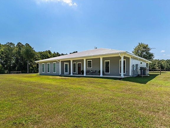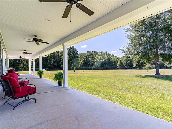 Are you looking for privacy and security with quiet country living, close to town? This stunning one-story hidden gem nestled in a clearing surrounded by 13+ acres. With a wooded buffer adds privacy from the street and neighbors. This manicured parcel is fenced/cross fenced with an electronic gate for added security. This beautiful 2000+ sf home features 9 ft ceilings, custom Knotty Alder cabinets, and granite counter tops. Master Suite offers a large bedroom, double granite vanities, oversized custom tiled shower, and a soaking tub. The construction details consist of 2x6 framing, spray foam insulation, climate-controlled garage, high impact windows and doors, and was engineered to withstand winds 150+ mph. Enjoy the outdoor living with over 1,000 sq ft of front and rear porches. A climate-controlled workshop which features an overhead door also includes a covered boat and RV storage area. Let's add the "She Shed" that offers a separate heated/cooled area for all her hobbies!