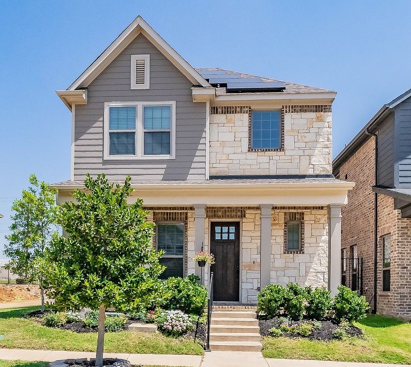 ACCEPTING BACKUP OFFERS Experience convenience, sophistication, and comfort in this stunning garden villa. Easy commute to the city and just minutes from DFW airport, Grapevine, scenic trails, parks, and top-rated schools, this home offers an unbeatable location. First floor welcomes you with an oversized 2-car garage, spacious office, upscale kitchen, guest bath, soaring 2-story living room, and a covered patio that leads to your rare side yard, perfect for outdoor enjoyment. Ascend the stairs adorned with iron balusters to discover an oversized loft, two secondary bedrooms and secondary bathroom, laundry room with soaking sink, and a luxurious primary suite featuring a walk-in closet, dual sinks, bathtub, and separate shower. Embrace comfort and efficiency with smart thermostat, WiFi-ready irrigation system, dual zone 16 SEER HVAC, energy-efficient construction, and solar panels. Community offers walking paths, playgrounds and sparkling pool with grilling area and facilities.