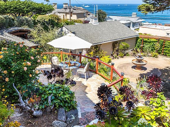 Absolutely grand Colonial home overlooks the beautiful Lovers Point and surrounding Monterey Bay Sanctuary. Spectacular English garden and terraced landscape accented by water structures and jagged rocks towering into the sky. This estate provides a sense of sanctuary and seclusion while also offering entertainment areas at every turn. Natural light floods the home during dramatic sunrises and sunsets. The homes interior expresses an authentic European point-of-view with its high ceilings, hardwood floors, pocket doors, paned windows, and cozy nooks for reading or study. The home's versatility represents the ideal opportunity for a multi-generational family or friends to enjoy and cherish for many years to come. The attached guest quarters offer a touch of Carmel coziness with its own kitchen and bath, allowing visitors to live connected or independently. The detached three-car garage accents the property with its original 1940s character, perfect for woodworking or classic cars alike.
