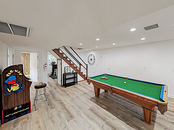 The Game Room downstairs has many Board Games, a Pool Table, Classic Arcade Games (like Pac-Man), Air Hockey, Foosball, and a large TV.