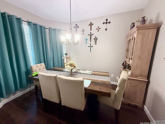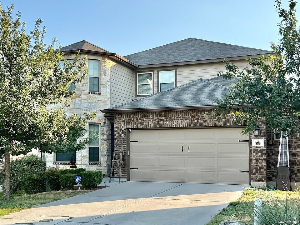 Discover this stunning 5-bedroom, 3.5-bath home spanning 3,047 square feet, with an optional FHA assumable loan! Built in 2017, its contemporary design and premium finishes make a memorable first impression. Downstairs, the open-concept living and dining areas flow seamlessly into a gourmet kitchen equipped with granite countertops, stainless steel appliances, and a breakfast area, as well as a large, private bedroom suite. Upstairs, four generously sized bedrooms each boast ample closet space, and a versatile media room provides the perfect spot for recreation, work, or movie nights. Set on a level quarter-acre lot, the expansive backyard presents endless possibilities for entertaining and relaxation. Imagine an inground pool, outdoor kitchen, or lush garden retreat-this blank canvas is ready for your personal touch. Highland Grove's community amenities include a resort-style pool, playground, and scenic walking and biking trails for all ages. Conveniently located between San Antonio and San Marcos, this home grants easy access to historic Gruene Hall, Schlitterbahn waterpark, and local shopping and dining. Nearby schools include Morningside Elementary, Danville Middle, and Davenport High-ideal for families seeking top-tier education options. Additional highlights include a two-car garage, covered front porch, covered rear patio, and low-maintenance landscaping. Schedule your private tour today and discover the perfect blend of luxury, community, and Texas charm at 888 Maple Dr.