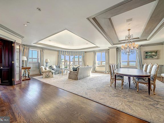 Welcome to Unit 2102 at The Residences at Liberty Center, a luxurious penthouse condominium that redefines the essence of elevated living. Nestled in a prestigious location, this property offers an unparalleled living experience with breathtaking sweeping views across the DC metro skyline and bespoke design. Spanning nearly 3,000 square feet, this exceptional one-of-a-kind custom residence boasts two generously sized bedrooms, two full bathrooms, and a convenient half bath. The inclusion of a private den adds versatility to the space, serving perfectly as a home office or a cozy retreat. As you step into the grand foyer, prepare to be captivated by the meticulous attention to detail showcased through arched ceilings and doorways, elegant marble tile flooring, designer lighting fixtures, and unparalleled craftsmanship. The expansive living room is bathed in natural light, featuring surround windows that frame the stunning eastern vistas of Rosslyn and downtown DC. Adjacent to the living area is a formal dining room that offers direct views of the Monument, creating an idyllic backdrop for hosting gatherings. Two inviting balconies extend the living space outdoors, providing serene spots to enjoy the panoramic views of the DC and Virginia Monuments to the National Harbor and beyond. The property also includes three garage parking spaces and two separate storage units, adding convenience to luxury. Residents enjoy access to Liberty Center's hotel-like amenities, including a 24/7 concierge service, rooftop pool and terrace, fitness center, courtyard with dog park, and bike storage. Perfectly positioned in the vibrant heart of Arlington, it's just moments from Metro access, Weekly Farmers Market spring through fall, downtown DC, and many shopping, dining, and entertainment options. Experience the epitome of sophisticated urban living at Liberty.