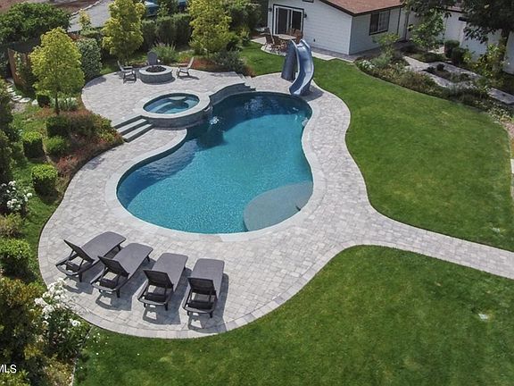 Welcome to the highly desired Conejo Oaks neighborhood! Drive up a double sided driveway to a true single story home plus a guest house all situated on a private, flat corner lot with everything you need to entertain and make family memories! The main house has 4 bedrooms. 3 of the bedrooms have their OWN en-suite/full bathrooms and the 4th bedroom has a full bath across the hall. The guest house has 1 bedroom, 1 full bathroom, kitchenette and den/family room with wall unit hvac, can be utilized as a home office too. There is a detached area with its own washer & dryer hook ups for the guest house. The main house, a little over 3,000 sqft has a spectacular open layout with oversized entertaining rooms; dining, kitchen and family room, all with high ceilings. The kitchen has Viking appliances, including a 6 burner stove and double convection bake ovens. Solid oak wood floors throughout with sun tunnels bringing in floods of natural light. Indoor laundry area. The backyard has a large fully covered patio with an outdoor stainless steel kitchen setup; BBQ, sink, refrigerator and bar seating. Custom pebble tech, salt water pool & spa with water slide too. Just to the left of the spa is a flat paved area with a fire pit and seating. Huge side yard that has RV parking possibilities or sport court use. Hardwired camera and alarm system for ultimate security. Serene pavers throughout the yard with orange and lemon trees. Do not miss this opportunity to own a true single story home on a premier lot in Conejo Oaks.