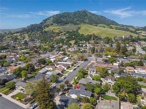 Delightful 4 bedroom 2 bath home located in the highly sought after Anholm District of San Luis Obispo. The original 1949 bungalow has been meticulously cared for and lovingly updated with modern finishes in keeping with the original style. The living room features curved ceiling, hardwood floors, antique light fixtures, gas fireplace and a pocket door leading to the kitchen. Hardwood floors continue throughout the home including the 3 main level bedrooms, one of which features French door access to the back patio. A barn door entrance to the completely remodeled hall bath with custom tile work, vintage Art Deco lights and a walk-in shower featuring 2 shower heads plus 1 hand spray. The kitchen features curved ceiling, quartz counters, glass subway tiles, a Bertazzoni Professional range, Miele dishwasher plus many other wonderful additions. Adjacent to the kitchen is the family room addition with antique light fixture, gas fireplace, closet laundry featuring a freestanding cast iron sink and storage. Upstairs is the primary suite featuring vaulted ceiling, gas fireplace, floor to ceiling windows showcasing a great view of Mission Mountain. Adjoining is the primary en-suite bath featuring marble floors, custom tile and a large walk-in shower with 2 separate shower heads and hand held spray. The custom vanity is from Habitat Furnishings and vanity mirror from Restoration Hardware. Other great features include new electric and plumbing in 2018, tankless water heater, fire sprinklers and all 3 fireplaces are thermostat controlled. Beautifully landscaped front and back yards offer covered seating areas, ideal for entertaining, fruit trees, covered storage and a 120 sqft She-Shed/Art Studio with so many possibilities. This desirable neighborhood is conveniently located near downtown San Luis Obispo with great restaurants, shopping, nearby hiking and biking trails and just minutes to great beaches and world class wineries.