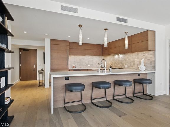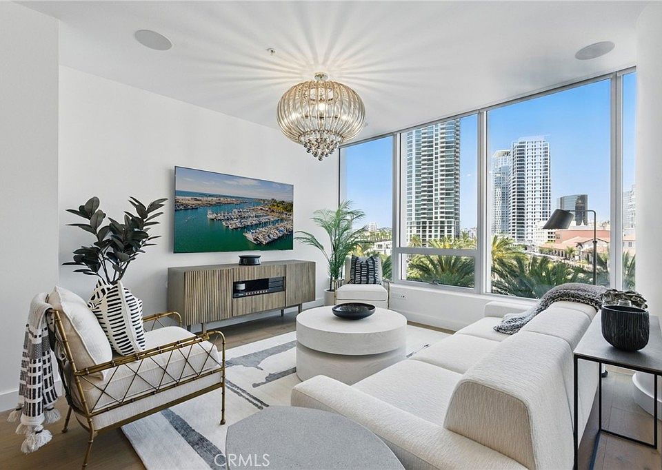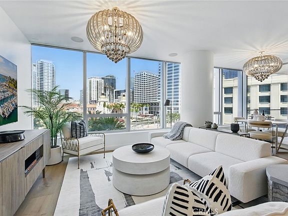 Discover refined coastal living at the Super Prime building Pacific Gate, the crown jewel of San Diego’s skyline. This beautifully designed residence is one of just 5 units on the 5th floor with an ‘05 unit number, meaning its layout and placement is equivalent to an ‘06 unit. This home features floor-to-ceiling windows that frame the stunning city views, luxury hardwood flooring, marble tile, designer lighting and an audio visual system with premium surround sound enhancing the ambiance for daily living and entertaining alike. The kitchen offers top-of-the-line appliances, Caesarstone countertops, motorized upper cabinets, and lower cabinet double drawers in matte walnut. Smart-home features including touch screen automated window treatments and lighting and intuitive climate control ensure effortless comfort throughout. The spacious primary suite offers sunny morning tree top views and is joined by a spa-inspired bathroom featuring heated floors, a walk-in shower, soaking tub, dual vanities, and an LED mirror with integrated TV along with a custom walk-in closet offering elevated storage. A generously sized and covered (shaded) private outdoor area extends directly from the main living space. This home also includes fantastic underground parking with two premium accessible corner parking spaces (not tandem!) and two! private storage lockers. Residents at Pacific Gate enjoy unparalleled amenities: 24-hour concierge service, a 45-foot yacht share, luxury car fleet, movie lounge, business center, doggy station, bike room, residents’ lounge with catering kitchen, a fully equipped fitness center featuring a sauna and steam room, and a resort-style pool terrace with cabanas and grilling stations just one floor below. Just moments from the RaDD District, Seaport Village, the Rady Shell, Little Italy, and some of San Diego’s best waterfront restaurants and cultural destinations. Convenience and Culture. Designed by Hirsch Bedner Associates and Kohn Pedersen Fox, Pacific Gate’s sculptural glass towers redefine the city skyline and deliver next-level waterfront living.