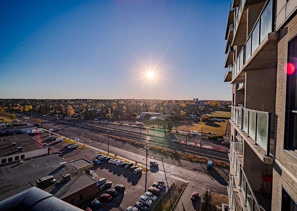 Attention Investors and First-Time Home Buyers! Welcome to this bright and spacious 11th-floor condo in the sought-after London at Heritage Station! This popular Yorkshire floor plan offers one bedroom with a walk-through closet to a four-piece bath, plus a versatile den/office and an open-concept kitchen and living area with soaring 9-foot ceilings. The owner recently upgraded the flooring—replacing carpet with stylish, durable laminate two years ago—adding a modern touch to the home. The kitchen features granite countertops, plenty of cabinet space, and a convenient breakfast bar overlooking the living area, perfect for entertaining. Enjoy your private balcony with unobstructed southwest mountain views and stunning afternoon sunsets. The building’s unbeatable location offers a 5-minute walk to Heritage LRT Station and only 2 minutes to Save-On-Foods, Tim Hortons, and more. Whether you’re looking for a smart investment or a place to call home, this unit offers the perfect combination of modern comfort, convenience, and style. Don’t miss out—book your showing today!
