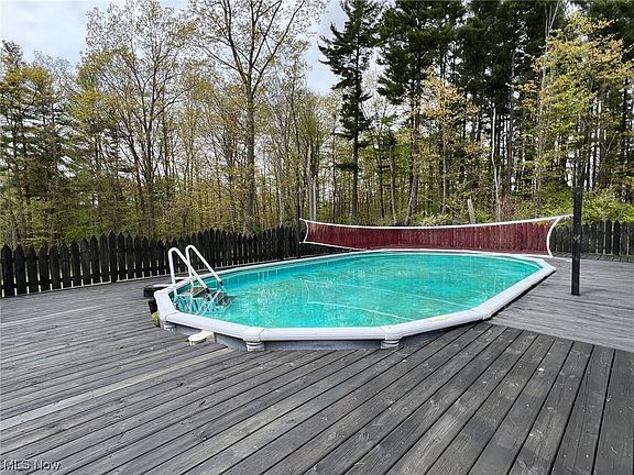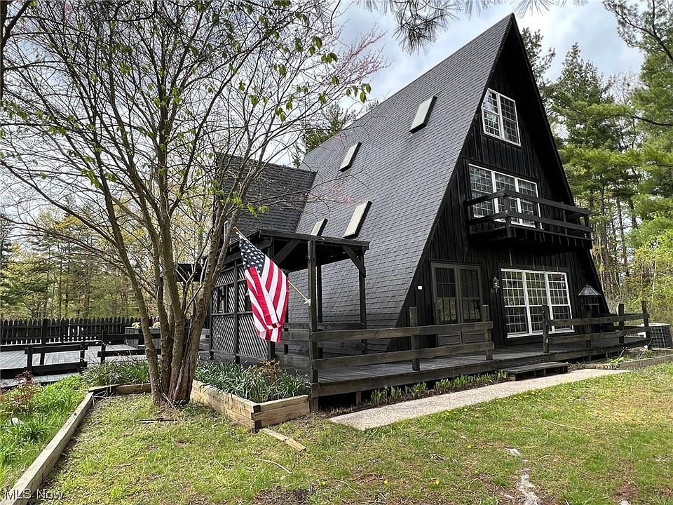 RETREAT to THE COUNTRY to these 6.75 Private Wooded Acres with A-Frame style home on 2 parcels! The wrap around porch welcomes you to this spacious home with over 2000 sqft of living space, 3 Bedrooms, 2.5 Baths and basement. Living Room with wood burning fireplace is open to Dining Room with built-in bookshelves and Kitchen with all appliances. Bright & light Family Room with wall to wall windows includes wood burning stove, double french doors and access to deck. Step up to the 2nd floor bedrooms with office/bonus room, full bath and spiral staircase to access the 3rd floor bedroom with skylights. The full walk-out basement is partially finished and includes Rec/playroom, full bath, laundry and storage area. Central air. Secluded and set back off the road, enjoy your summer on the multi-level deck with pool and panoramic views of nature with mature trees and park-like yard. Freshly stained exterior of all 3 structures and decking. Home is wired for generator. 3+car detached garage & huge 40x60 Polebarn with office, electric is ideal for collector or car enthusiast. Bring your decorative touches...this home is ready for a new family to make it their own! Chardon Schools.