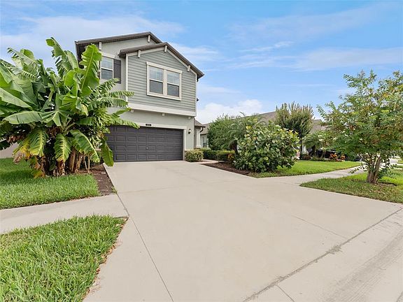 1% lender credit available to qualified buyers! This beautiful two story 2775 sq ft home features four bedrooms, two and a half bathrooms, and a two car garage. Step inside to a grand entry that opens to a large den and an open style living room and dining area filled with natural light from numerous windows and a large sliding glass door. The kitchen offers a walk in pantry, high end stainless steel appliances with an extra refrigerator, a deep stainless steel sink with touchless faucet, and under sink reverse osmosis water system with PH and remineralization alongside a whole home carbon filter water softener. Crown molding accents the downstairs and master bedroom while under stair storage and a mud room add convenience. Upstairs boasts new water resistant wood like laminate flooring, a spacious loft with bright windows, a large master suite with walk in closet and private bath featuring a garden tub with window, separate shower, and double sinks, as well as three additional bedrooms including one nearly the size of the master with walk in closets in two. Additional upgrades include a laundry room with window that passes through the master closet, hurricane rated front door, double pane windows, tankless gas hot water heater, outside electrical panel prepped for generator hookup, surge protectors on both AC systems, and gas dryer and stove hook up connections. The exterior offers a large backyard with a covered lanai, lush landscaping, sprinkler system, refreshed mulch, and a six foot PVC privacy fence with gate installed with heavy duty stainless steel hardware and backed by a lifetime material warranty, creating a private outdoor retreat perfect for entertaining or pets. This home combines thoughtful details and modern conveniences with a versatile floor plan designed for comfort and entertaining.