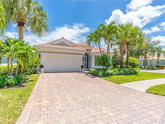 An amazing, contemporary designed, three bedrooms with den/two bath, Vernon Hill single family home in the gated community of VeronaWalk has just been listed. This totally updated and renovated home is an example of modern, luxury living. Customization is evident in every area of the home. Seated on a corner lot towards the end of the cul de sac and surrounded by lush landscaping with garden lighting, this home has been painted one of VeronaWalk’s newer shades. A new roof and gutters were installed in 2022. The decorative glass entry door with sidelight opens into a large living area with a newly painted, neutral hue interior (for ease in decorating) and tile plank floors. Crown molding wraps the ceiling and the walls wainscoting and chair rail enhance the space. Plantation shutters shade the windows. This home has two fireplaces. One in the family room area that can be viewed from three sides and the second in the primary suite. A custom built entertainment unit with wall mounted television and shelf niches offers the focal point to the family room. A new, custom, white kitchen with quartz counters (waterfall edge island), stainless appliances and a gas stove with range hood opens to the entertaining space. Charming display cabinets top the abundant storage. The adjoining dining area has a built- in, cabinetry servery with a wine fridge. A water filtration system was recently added. Mechanical upgrades include A/C (2022) and a water heater (2021). The primary suite is a relaxation sanctuary with its own fireplace. Decorative trim is on the feature wall behind the bed and your walk-in closet has designer cabinetry and drawers for all your clothes. An ensuite bath accessed through a sliding barn door offers dual vanities, private water closet, a large tiled shower, custom lighting and a sit down prep area with glass doored storage. A covered, paver lanai leads into a screen enclosed patio ( screens/screws replaced in 2022) with a picture frame opening looking out to a long water and bridge view. The custom, heated pool has multiple underwater lights for mood invoking ambiance at night. A spacious, two car garage is a dream with custom $8000 improvements installed in 2024. Plentiful cabinetry, 4x8 power lift for overhead storage, a pull down stair for additional attic space and interlocking plastic tile flooring complete the garage. The home is storm ready with electric shutters on the front and rear and accordion shutters on the rest of the windows. This home -a true masterpiece- can be yours in gorgeous Naples.