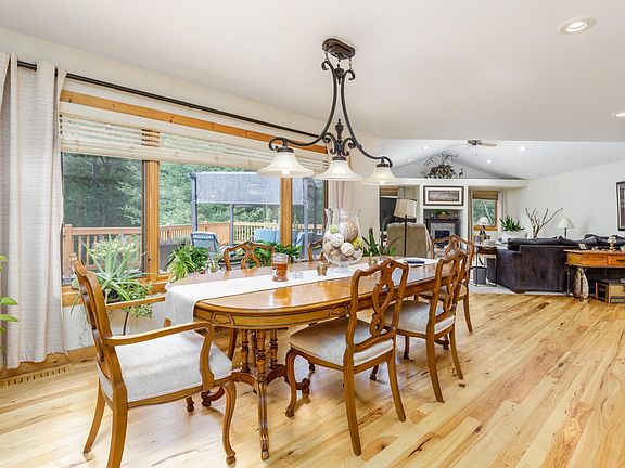 Nestled amidst the serene backdrop of a heavily wooded 5-acre lot, this home offers an unparalleled living experience just outside of town. From the moment you step through the inviting entrance, you are greeted by an atmosphere of sophistication and warmth, setting the tone for what lies beyond. Boasting five generously sized bedrooms and four full bathrooms, this home is designed to accommodate both family living and entertaining with ease. The main level is anchored by an expansive living room, flooded with natural light, providing an ideal space for relaxation or hosting gatherings. Adjacent to this is a beautiful, kitchen, complete with a walk-in pantry that offers ample storage space. Its design is functional, ensuring that meal preparation and casual dining are a pleasure. The main level also features a luxurious master suite, a sanctuary of comfort and style. It includes a spacious walk-in closet and a spa-like bathroom equipped with a jetted tub and a walk-in shower, creating a private retreat to unwind after a long day. The room is thoughtfully designed to accommodate all your furnishings, ensuring that comfort is never compromised. Venture to the lower level, where versatility and entertainment abound. This area houses a second ensuite, perfect for guests seeking privacy, along with two additional bedrooms. The large family room serves as a central hub for leisure, complete with a wet bar for convenience and enjoyment. For those seeking wellness and rejuvenation, a full sauna with an accompanying shower offers an at-home spa experience. Step outside onto the lower level deck to soak in the serene views of the surrounding woods, a perfect spot to unwind and connect with nature. The home is designed to meet the needs of modern living while offering a unique connection to nature, all while being conveniently located just outside of town.
