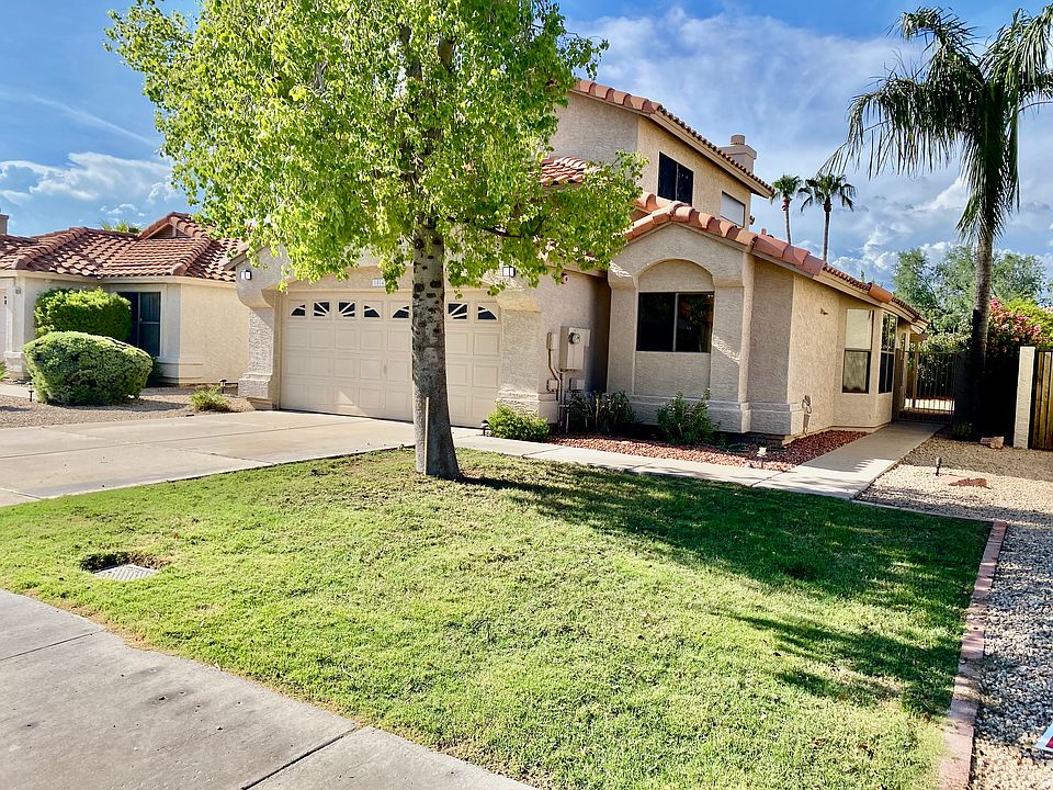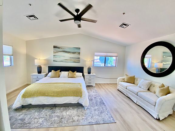 Furnished updated home in the highly desirable central Scottsdale location near the 101 freeway and Cactus road. 3 bedrooms, 2 bathroom and 2 car- garage.Light and bright Master bedroom upstairs, two bedrooms and a bath downstair. Wood and tile flooring , no carpet. Grassy back yard with north facing covered patio. Available to lease 10/1/25 minimum one month. March rent is $5000