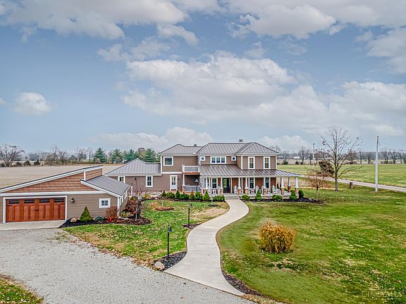 Set on 21.1 acres across 2 lots, this 1860 farmhouse flawlessly blends a 2016 remodel with vintage character, featuring wood floors throughout, original trim, hardware & charming built-ins. The wraparound porch leads into a spacious LR with stone hearth & WBFP, flowing to a custom Kitchen w/granite counters, island w/counter bar, Jenn-Air appliances, dbl oven & original cabinetry, plus a sun-filled Breakfast Room. The DR addition boasts a beadboard ceiling & sweeping field views. Main level also includes a large laundry room/mud room off the att 2-car garage & full bath. Upstairs, 2 bdrms were combined into a generous rm w/sitting area(original doors are intact so could easily replace the wall for a 3rd bedroom), while the primary bdrm offers an ensuite w/soaking tub, tile shower, dbl vanity & WIC. Outside: in-ground pool, 4888 barn w/concrete flrs, 1881 barn w/original floors & slate roof, another barn & det 2-car garage w/finished rec room. Home has city water, barns have well water