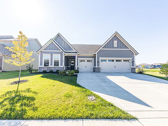 Don't miss out on this custom ranch home built in 2020, located in the desirable Laurelton subdivision! This home offers 3 bedrooms and 3 full baths, including two en-suites, as well as a flex space that can serve as a potential fourth bedroom or office. The open floor plan showcases a beautiful kitchen with quartz countertops, a walk-in pantry, and shaker-style cabinets. You can enjoy stunning water views from the expansive windows or relax on the artfully designed, spacious covered porch with a stamped patio extension. It's the perfect setting for entertaining or cozying up on chilly fall nights around the fire pit. Conveniently situated next to the picturesque B&O walking trail and within the highly sought-after Brownsburg schools!
