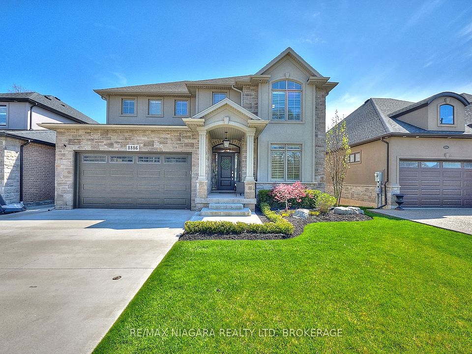 Welcome to one of the most amazing deals of the Century! 8886 Black Forest Crescent, a beautifully designed 2,534 sq. ft.(not including the basement) stucco and brick home located on a quiet cul-de-sac in the highly desirable south end of Niagara Falls. This 3-bedroom + loft home offers smart functionality with the option to easily convert the loft into a 4th bedroom if desired. The main floor features a bright, open-concept layout where the spacious living room flows seamlessly from the kitchen, perfect for everyday living and entertaining. The kitchen is the heart of the home, offering abundant cabinetry, a large island, and direct access to the full butlers pantry that leads to the formal dining room ideal for hosting guests. Step through the oversized sliding doors and into your private backyard oasis, complete with an in-ground pool, hot tub, and covered deck, your own personal retreat. Upstairs, each bedroom includes its own walk-in closet, while the primary suite features dual walk-in closets and a gorgeous ensuite bathroom for the ultimate convenience. The unfinished basement adds 1,100 sq. ft. of potential, bringing the total living space to over 3,600 sq. ft., ready to be finished to suit your needs. Situated just minutes from schools, shopping, restaurants, movie theatre, golf courses, and highway access, this home blends space, privacy, luxury and location in one beautiful package.