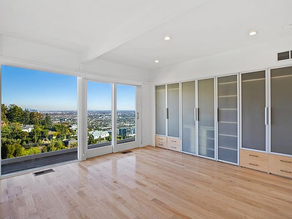 Stunning Redone Contemporary w/ unobstructed downtown, city & canyon views. Sits above famed Sunset Strip off Sunset Plaza. Chic Tri-level Home w/ views from every room. 3 bd. 3.5 bath home located on quiet cul-de-sac street, additional office space, hardwood floors throughout, remodeled baths, 2 FP's, custom fitted closets, decks with access from all rooms, stunning gourmet kitchen w/ large island. This house was done w/ care & w/ superb attn. to all details.