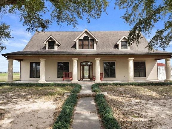 Immaculate Country Estate on over 3 acres located on quiet country road. This stunning 2 story residence offers over 4,000 sq ft of living space is nestled on a picturesque 3 acre lot adorned with mature live oak tress and a tranquil stocked pond with covered gazebo. Come relax and enjoy the peace and comfort of country living while drinking coffee in the morning or enjoying a glass of wine in the evening on your grand front porch. Inside you'll be greeted by a warm and inviting living room with vaulted wood ceilings, a soaring fireplace, perfect for cozy evenings. The kitchen is a chef's delight, featuring ample counter space, modern appliances, and a breakfast nook. The spacious Main bedroom is complete with luxurious ensuite and private fireplace. The remaining bedrooms are generously sized each with its own ensuite. Step out the back door into a large enclosed patio with a grille and outdoor appliances. A large 40x60 unattached shop includes a man cafe and half bath. All measurements are more or less. Other features include a propane standby generator, A vinyl privacy fence with gated driveway entrance. Kitchen appliances remain with home.