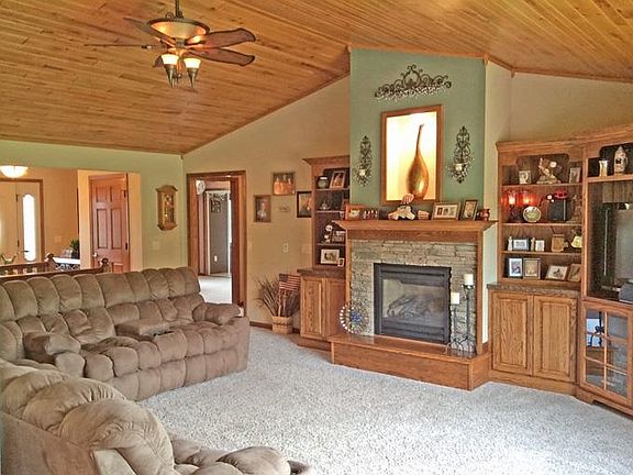 Your dream home can come true - this 3 BR ranch, 1 1/2 miles from Marshfield. Located in cul-de-sac on 1.02 A professionally landscaped. Enjoy nature at its finest. In floor heating in full basement. 2 gas fireplaces, deck & patio. Home theater system in main floor living room & lower level family room. Speakers thru out home, including garage, patio and lower level. 9ft basement walls. Wood ceiling in vaulted living room. All stainless steel appliances. Cabinets are red oak w/black cherry stain.