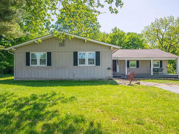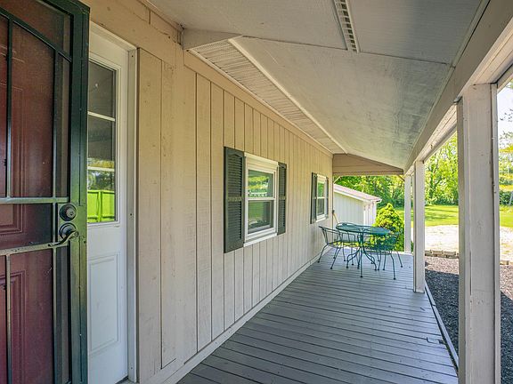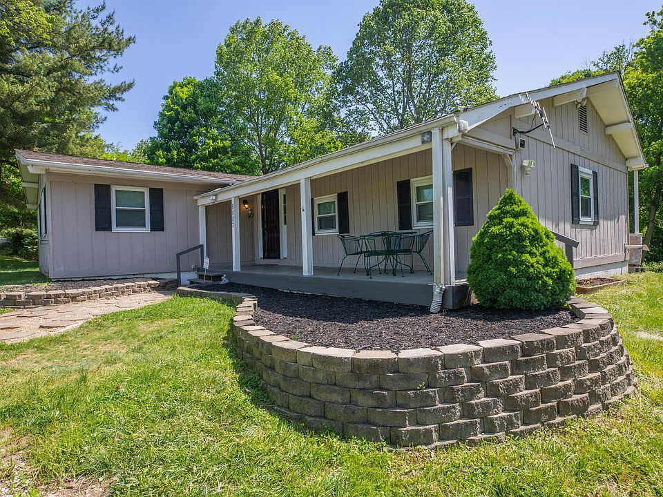 Ranch Home sitting on 1.35 Wooded Acres w/ over 2,500 SqFt including Finished LowerLevel. Covered Front Porch leading into Hardwood Foyer w/ Built-in Closet & Bench. Hardwood Continues into Eat-in Kitchen w/ Breakfast Bar, Granite Counters, Custom Back Splash, Stainless Appliances & Cherry Cabinets w/ Pantry. Great Rm w/ HDWD Floors & Corner Wood Burning Pellet Stove w/ Floor to Ceiling Stone Wall. Windows replaced in 2018. Owners Suite w/ Private Updated Full Bathroom, Walk-In Closet & Newer Ceiling Fan/Light Fixture. 2 Additional Large Bedrooms w/ Closets & Hallway Full Bath w/ Hardsurface Counter, Ceramic Floors & Built-in Linen Closet. 2 Separate Finished Rooms in LowerLevel. Radon System, Lots of Storage, Reverse Osmosis, 3car Garage, Fenced Yard, Shed, Deck, & Creek.