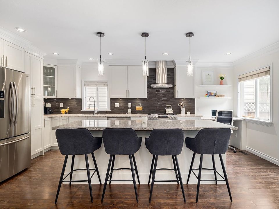 Bright spacious gourmet kitchenGas range stoveOversized islandDining areaFrench doorsHot tubLarge laundry