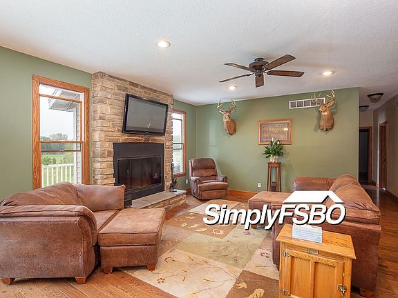 Custom built in 2012 this 5 bedroom 4 bath home sits on almost 6 acres of beautiful Rock River frontage in the Geneseo school district. Out of flood zone, so no flood insurance required. This ranch home features custom built kitchen cabinets, granite countertops with built in double oven, and 6 burner cooktop. Wood floors in the great room, 9' ceilings on both main level and lower level, spray foam insulation, wood burning fireplace in great room. Sliding glass doors from dining or master bedroom lead to 50' deck overlooking the Rock River. 40×40 insulated shop with water, floor drain and complete with car lift, 12' ceilings. Enjoy the river with your very own 12×24 pavilion with power and 3 RV hookups.