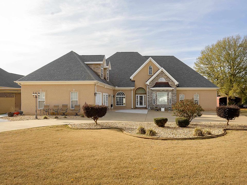 Welcome Home to this full brick beauty offering approximately 7200+/- square feet of the perfect mix of elegance & functionality. All five bedrooms live like private master suites, each having spacious layouts, ensuite bathrooms, and walk-in closets. Perfectly fitting for large or extended families, this home boasts two full indoor kitchens, both complete with huge pantries to satisfy even the most bustling households. Multiple dining areas including an indoor/outdoor dining space with its own dedicated kitchen. An indoor storm shelter within the laundry room provides peace of mind. The bonus room upstairs houses the fifth bedroom and offers enough space to include a full living area, gym, or theatre, creating an ideal suite for teens, in-laws, or guests. The exterior includes a security system, detached garage, patio, & large covered back porch. Whether you're a big family or seeking a plentiful amount of space, this home can beautifully compliment your lifestyle.