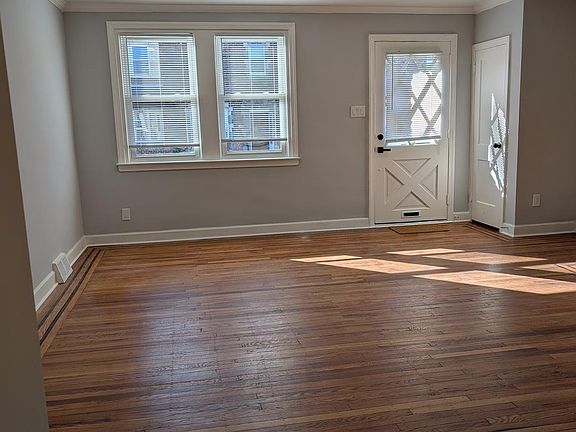 Welcome Home! This charming move-in ready residence greets you with a lovely front patio, perfect for relaxing outdoors. Step inside to a spacious living room that flows seamlessly into the formal dining room, both featuring beautiful hardwood floors. The updated kitchen offers crisp white cabinetry, granite countertops, and essential appliances, including a dishwasher and refrigerator—a bright and functional space for everyday cooking and entertaining. Upstairs, the second floor features a main bedroom with three closets, plus two additional bedrooms, all with hardwood flooring. The updated hall bath is highlighted by a deluxe shower caddy for a modern, spa-like feel. The home is complete with a full basement, ideal for additional living space, a home office, or recreation area, along with a one-car garage for added convenience. Move right in and enjoy comfort, style, and convenience from day one!