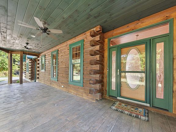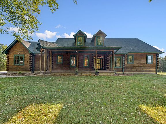 Welcome to this One-of-a-kind Custom Ranch Log Home on 2.82 Acres. Enter the serene setting via the long tree lined driveway (140 yards) which leads you to a welcoming stamped concrete front porch, setting the tone for the beauty within.